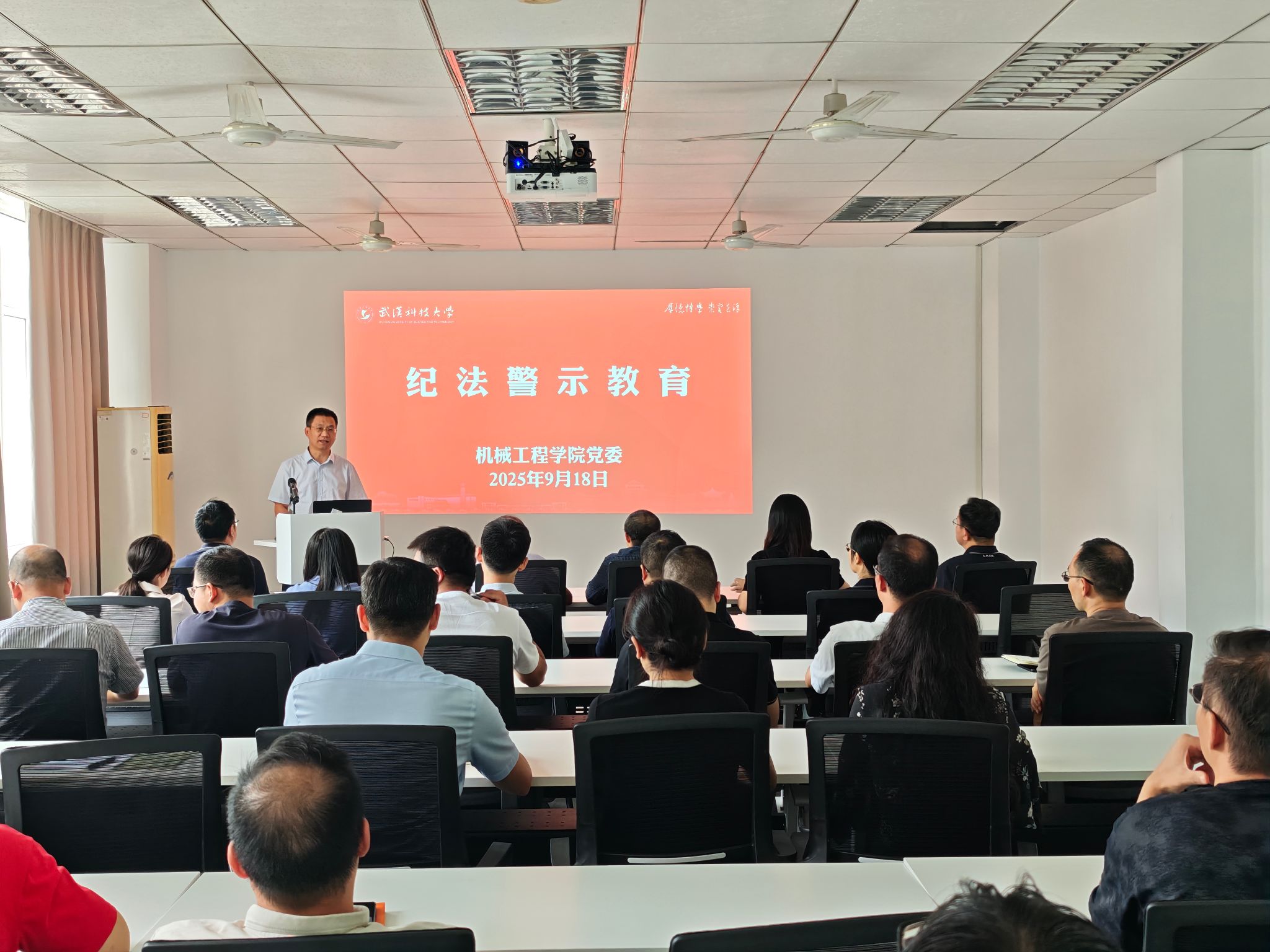(武科大网讯 祁迹)为巩固拓展学习教育成果,锲而不舍落实中央八项规定精神,推动作风建设常态化长效化,9月18日下午,机械工程学院党委在教一楼428会议室召开纪法警示教育大会。校纪委副书记韩洪波受邀担任主讲人,学院领导班子成员、党委委员、教工党支部书记、行政管理人员30余人参会学习,会议由学院党委副书记瞿孝平主持。