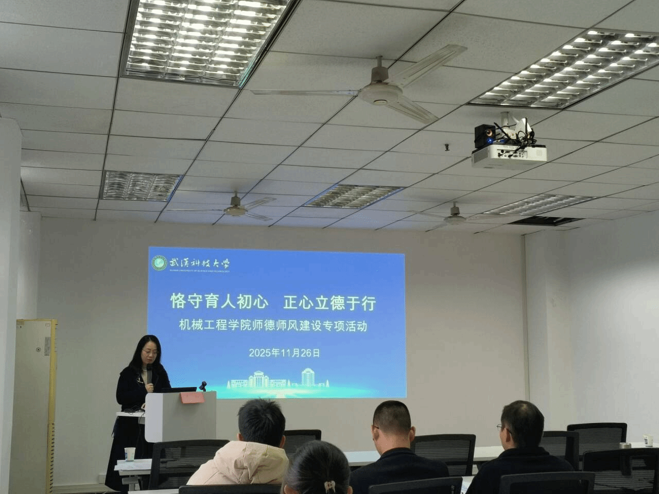 (通讯员 王芊姿)为全面加强新时代教师队伍建设,扎实推进师德师风长效化建设,11月26日,机械工程学院以“恪守育人初心,正心立德于行”为主题,成功举办师德师风建设专项活动。学院领导班子、各系部教师代表及辅导员代表齐聚一堂,活动由学院党委副书记瞿孝平主持。