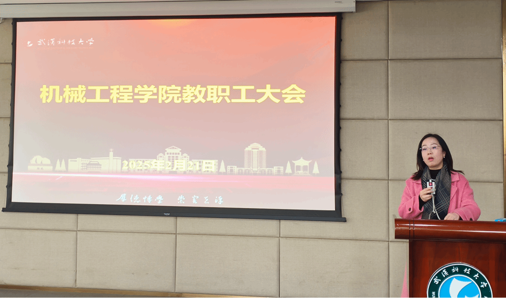 2月21日上午,机械工程学院在青山校区主楼0212室召开2025年第一次全体教职工大会。学院党委书记李婵娟、执行院长汪朝晖,副书记瞿孝平,副院长蒋佐斌、王兴东、王蕾、向峰以及全体教职员工参加会议。